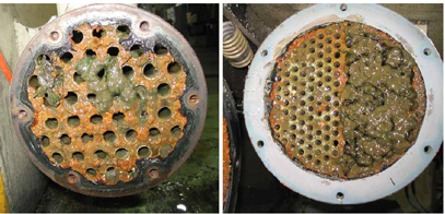 | 換熱器處理前觀察 | 換熱器處理三個月后觀察除垢效果非常顯著 | ||