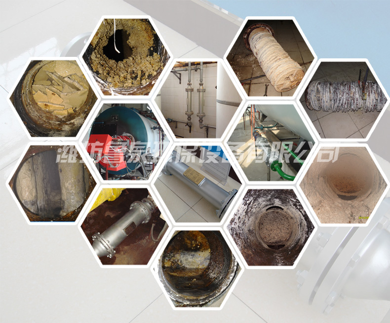 3 能用在特殊形狀的管道中除垢,起到人工除垢或機械除垢無法完成的效果。