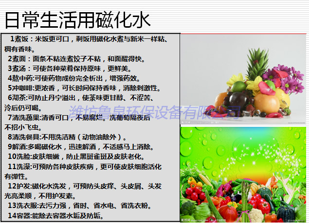 (12)磁化水洗菜、泡菜、洗水果,使炒菜肴香味純,口感甚佳,助您身體健康。
